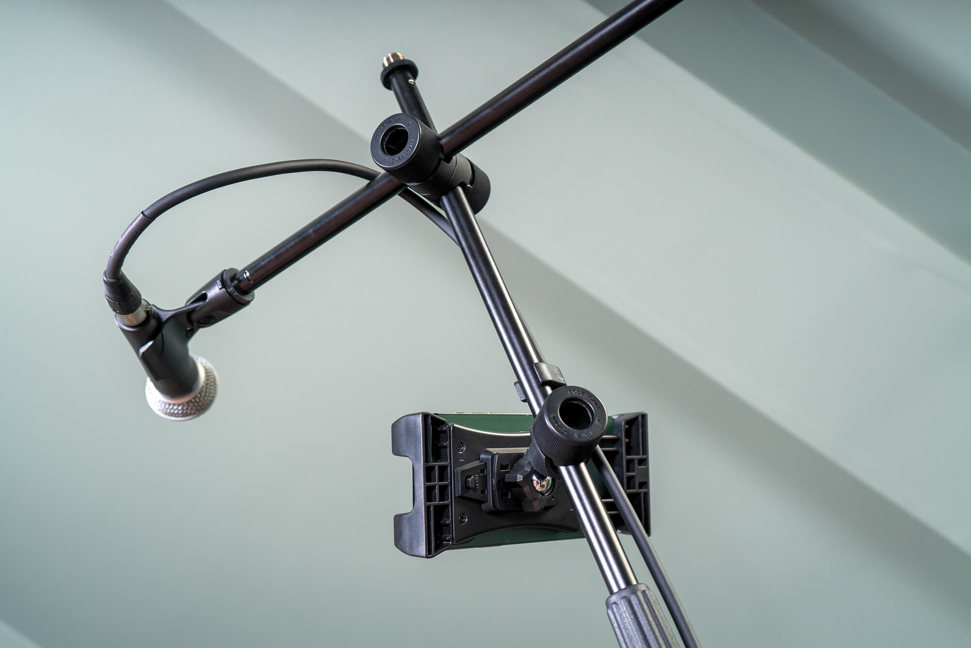 • Device Holder: Suitable for phones and tablets, the device holder features a full 360° rotation for perfectly positioning lyrics, scripts, music software and more.
