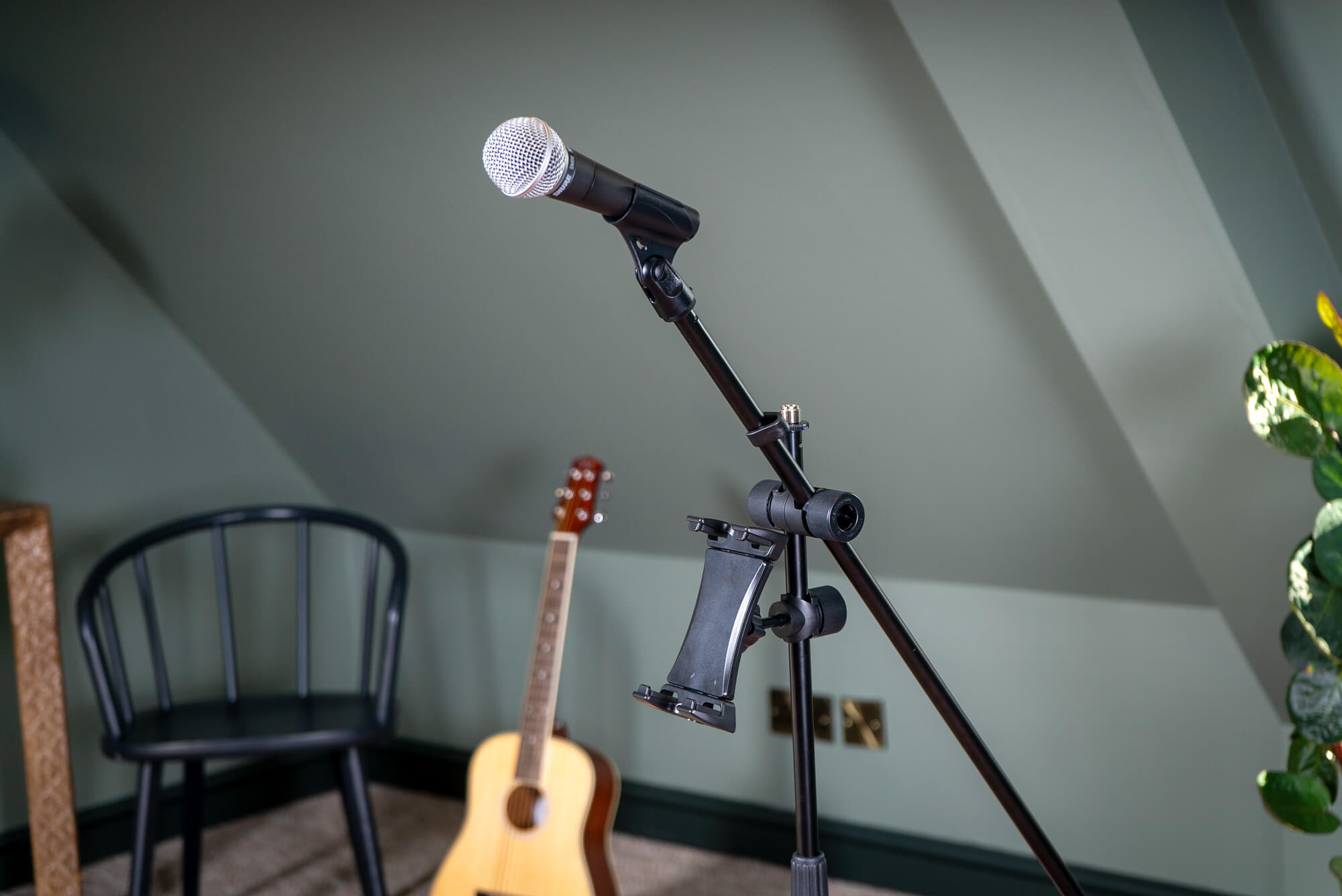 Built with quality aluminium, anti-slip rubber feet, and universal microphone compatibility with an adaptor.